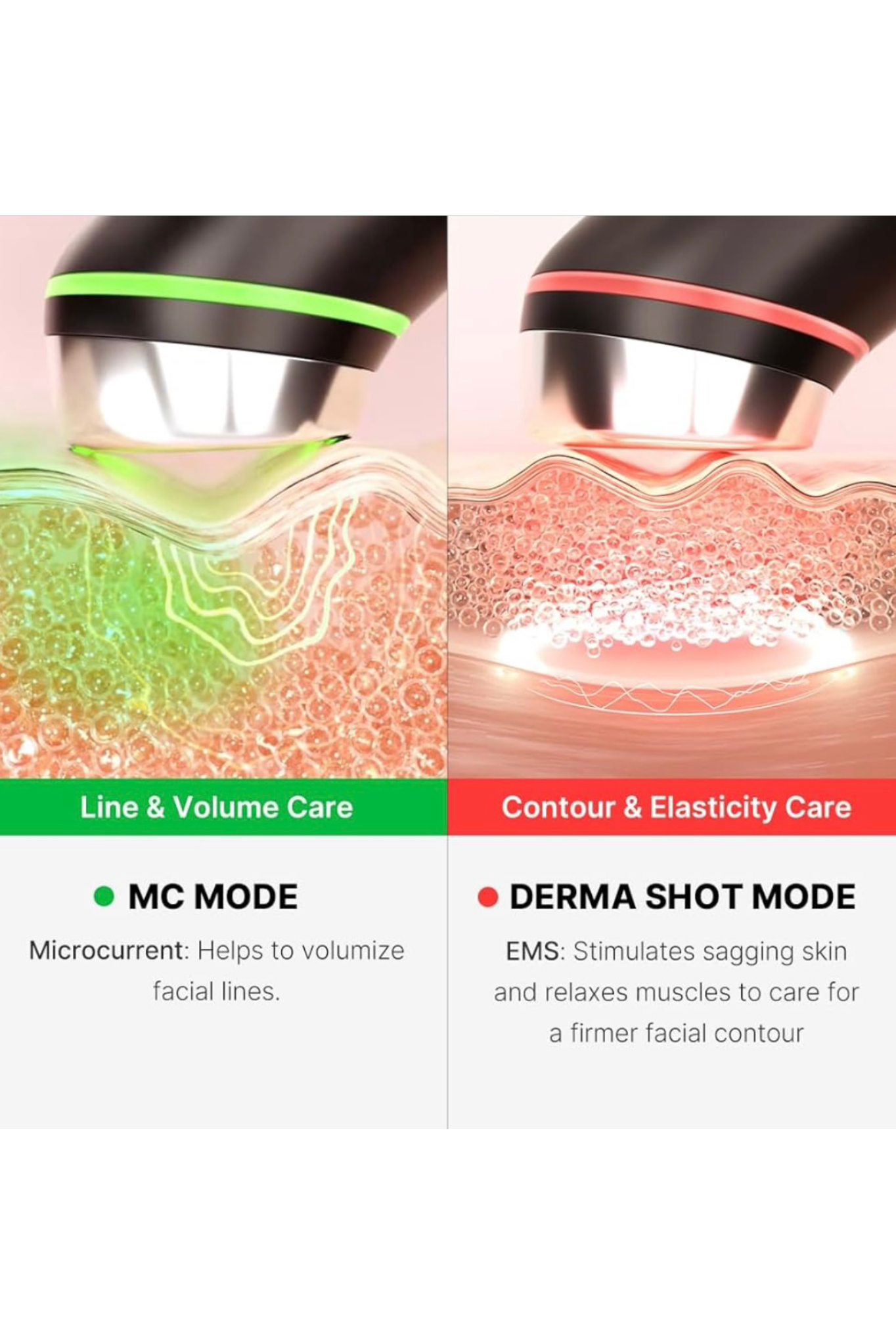 این دستگاه با ترکیب این تکنولوژیها به طوری عمل میکند که پوست را به صورت همزمان جوان، شاداب و صاف میکند.