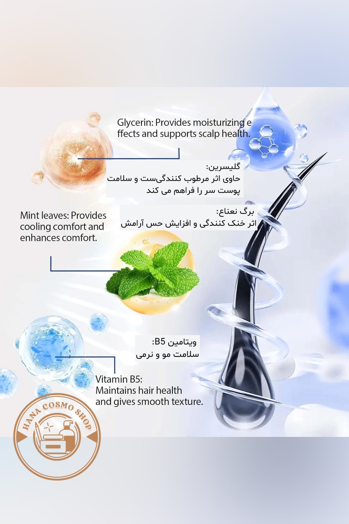 • کاهشدهنده ریزش مو و تقویتکننده فولیکولها