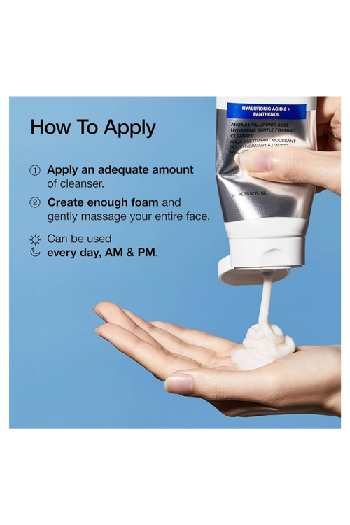 فوم شستشوی آبرسان هیالورونیک اسید و پنتنول آنوا یک شوینده ملایم و مرطوبکننده است که ضمن پاکسازی کامل پوست، رطوبت طبیعی آن را حفظ میکند. این محصول با ترکیبی از هیالورونیک اسید، گلیسیرین، زینک و پنتنول فرموله شده تا علاوه بر حذف آلودگیها و چربی اضافی، از خشکی و احساس کشیدگی پس از شستشو جلوگیری کند.