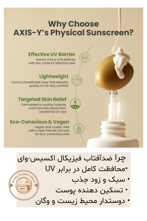 ضد آفتاب فیزیکی AXIS‑Y Complete No‑Stress Physical Sunscreen V3 SPF 50+ یک محافظ روزانه ملایم و موثر برای پوست است که با فیلترهای کاملاً فیزیکی از پوست در برابر اشعههای مضر UVA و UVB محافظت میکند. این ضد آفتاب با بافت سبک و فرمولاسیون تسکیندهنده، بدون ایجاد احساس سنگینی یا چربی روی پوست، به حفظ سلامت و شادابی آن کمک میکند.