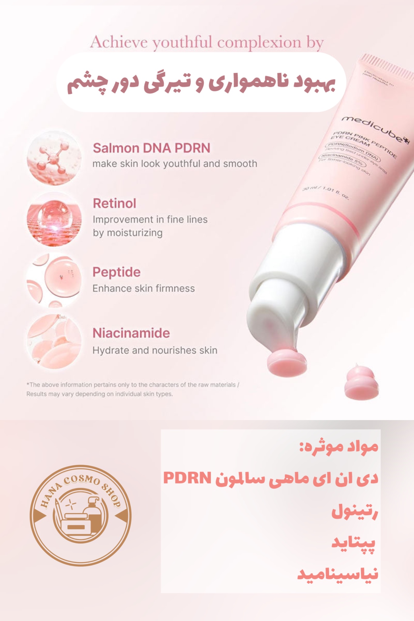 کرم دور چشم پپتاید صورتی و PDRN مدی کیوب ۳۰ میلی لیتر