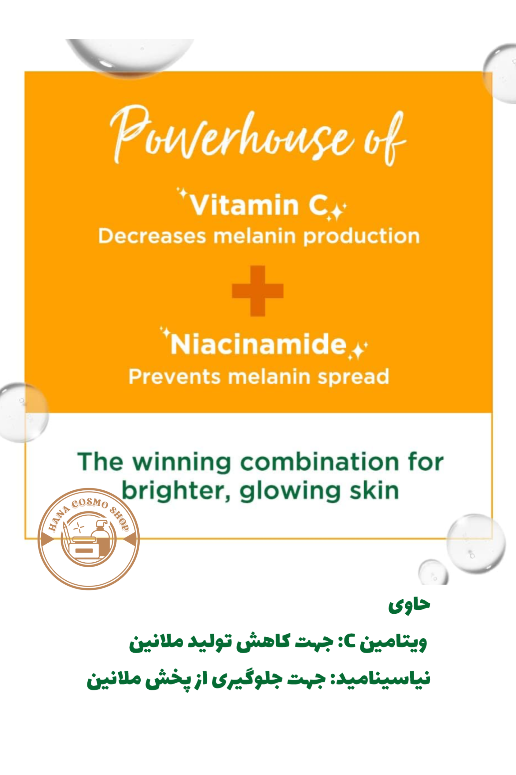 • حاوی ویتامین C برای روشنکنندگی و کاهش تیرگیهای پوستی