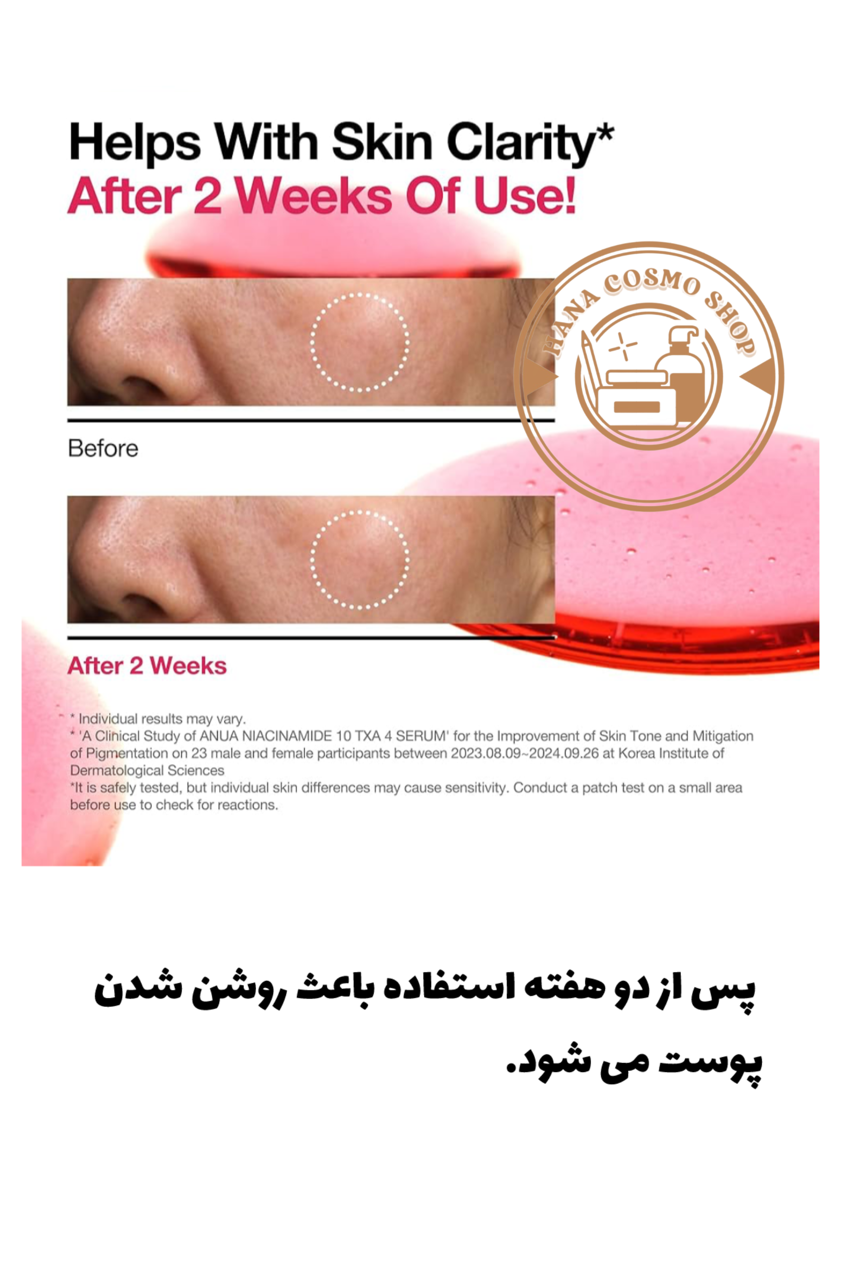 • نیاسینامید 10٪: کاهش لک، تنظیم چربی، تقویت سد دفاعی پوست